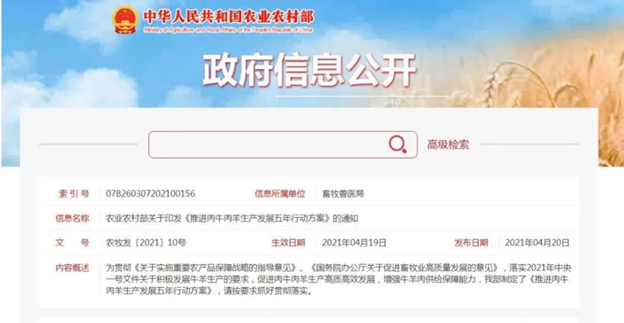 農業農村部落實2021年中央一號文件關于積極發展牛羊生產的要求,促進肉牛肉羊生產高質高效發展,增強牛羊肉供給保障能力,制定了《推進肉牛肉羊生產發展五年行動方案》(以下簡稱方案),并要求各省抓好貫徹落實。